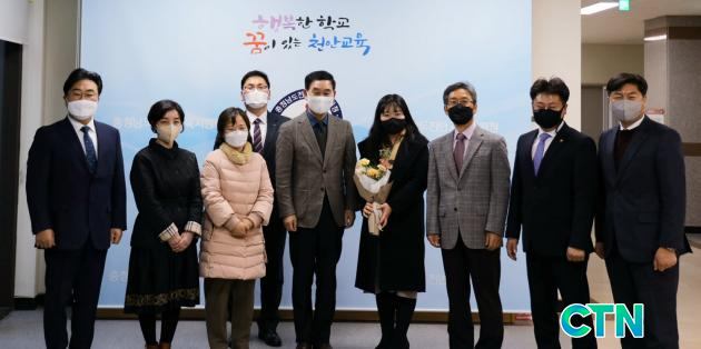 [CTN ±³À°½Å¹® = ±èÅ¿¬ ±âÀÚ] õ¾È±³À°Áö¿øÃ»(±³À°Àå ¼ÛÅ俵)Àº õ¾È±³À° ¹ßÀüÀ» À§ÇØ Çå½ÅÀûÀ¸·Î ºÀ»çÇÑ ¿ÜºÎ À¯°øÀλ縦 ¹ß±¼ÇØ Ãµ¾È±³À°Áö¿øÃ» ±³À°Àå °¨»ç(ǥâ)ÆÐ¸¦ Àü´ÞÇÏ´Â Àü¼ö½ÄÀ» °³ÃÖÇß´Ù.