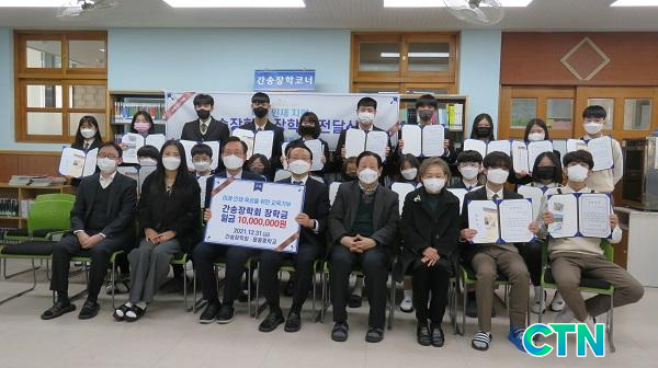 [CTN ±³À°½Å¹® = Á¶¼ºÂù ±âÀÚ] ¾Æ»ê½Ã À½ºÀÁßÇб³(±³Àå Ȳ¼º¼)´Â ¿ÃÇØµµ Çг⠸»¿¡ °£¼ÛÀåÇÐȸ(ÀÌ»çÀå ³²»ó¸¸) ÀåÇбÝ(1,000¸¸¿ø)À» Àü´ÞÇÏ´Â ±³À°±âºÎ Çà»ç¸¦ °¡Á³´Ù°í ¹àÇû´Ù.