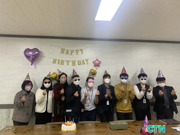 19ÀÏ(¼ö) »ýÀÏÀ» ¸ÂÀÌÇÑ Á÷¿øµéÀº °í±ò¸ð¿Í ±Í¿©¿î ¾È°æÀ» ¾²°í, ¼·Î¸¦ À§ÇØ »ýÀÏ ÃàÇÏ ³ë·¡¸¦ ºÒ·¯Áá´Ù.