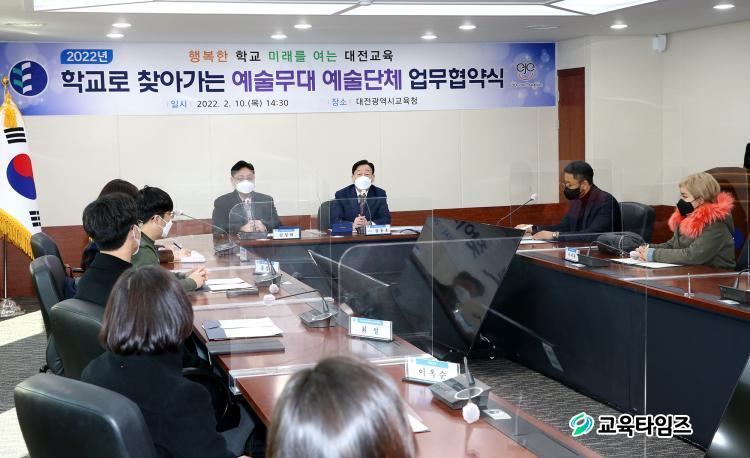 [±³À°Å¸ÀÓÁî/´ëÀü±³À°] Á¤¹ÎÁØ ±âÀÚ = ´ëÀü±¤¿ª½Ã±³À°Ã»Àº 10ÀÏ ´ëÀüÁö¿ª 20°³ ¿¹¼ú´Üü¿Í ¡®Çб³·Î ã¾Æ°¡´Â ¿¹¼ú¹«´ë ÃßÁøÀ» À§ÇÑ ¾÷¹«Çù¾àÀ» ü°áÇÏ¿´´Ù°í ¹àÇû´Ù. À̹ø Çù¾àÀº ¡¯2022³â Çб³·Î ã¾Æ°¡´Â ¿¹¼ú¹«´ë¡®ÀÇ ¿øÈ°ÇÑ ¿î¿µ°ú Áö¿ª ¿¹¼úÀΰúÀÇ Çù¾÷À» ÅëÇÑ Çб³¿¹¼ú±³À° Ȱ¼ºÈ¸¦ µµ¸ðÇϱâ À§ÇØ ½Ç½ÃµÆ´Ù.