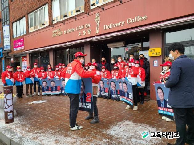´ëÅë·É ¼±°Å°¡ º»°ÝÀûÀ¸·Î ½ÃÀÛµÈ 14ÀÏ ¼»ê½ÃÀÇ Á᫐ ±¤Àå·ÎŸ¸®¿¡¼ ±¹¹ÎÀÇÈû À±¼®¿ Èĺ¸(2¹ø)¸¦ ÁöÁöÇÏ´Â ¼±°Å¿îµ¿¿øµéÀÌ Çϳª·Î ¹¶ÃÄ ÇʽÂÀ» ´ÙÁüÇϰí ÀÖ´Ù.