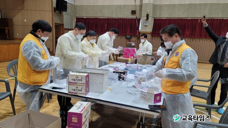 ÇöÀç, ±³À°Ã»¿¡¼´Â ½ÅÇбâ Çб³ ³» °¨¿° È®»êÀ» ¿¹¹æÇϰíÀÚ ÇлýÀº ÁÖ 2ȸ, ±³Á÷¿øÀº ÁÖ 1ȸ ¼±Á¦Àû °Ë»ç¸¦ Àû±Ø ±Ç°íÇϰí ÀÖÀ¸¸ç, À̸¦ À§ÇØ °¢°¢ÀÇ ±¸¼ºÇ°(°Ë»ç±â, ¿ë¾×Åë, ¶Ñ²±, ¸éºÀ, ¼³¸í¼ µî)ÀÌ ´ë¿ë·®À¸·Î Æ÷ÀåµÈ »óÅ¿¡¼ ³³Ç°µÈ °Ë»çµµ±¸¸¦ Çб³¿¡ È¿°úÀûÀ¸·Î ¹èºÎÇϱâ À§ÇØ ÇϳªÀÇ ¹À½À¸·Î ¼ÒºÐ Æ÷ÀåÇÏ´Â ÀÛ¾÷À» Çϰí ÀÖ´Ù.