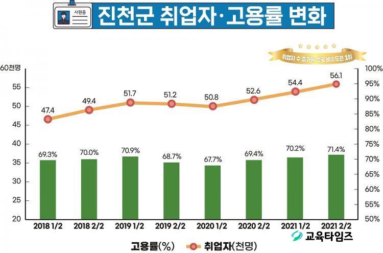 Åë°èû¿¡¼ ¹ßÇ¥ÇÑ 2021³â ÇϹݱâ Áö¿ªº°°í¿ëÁ¶»ç ¹ßÇ¥¿¡ µû¸£¸é ÁøÃµ±ºÀº Áö³ 2008³â °í¿ë·ü °øÇ¥ °³½Ã ÀÌ·¡ 13³â ¸¸ÀÇ ÃÖ°í ¼öÄ¡ÀÎ 71.4%¸¦ ±â·ÏÇß´Ù.