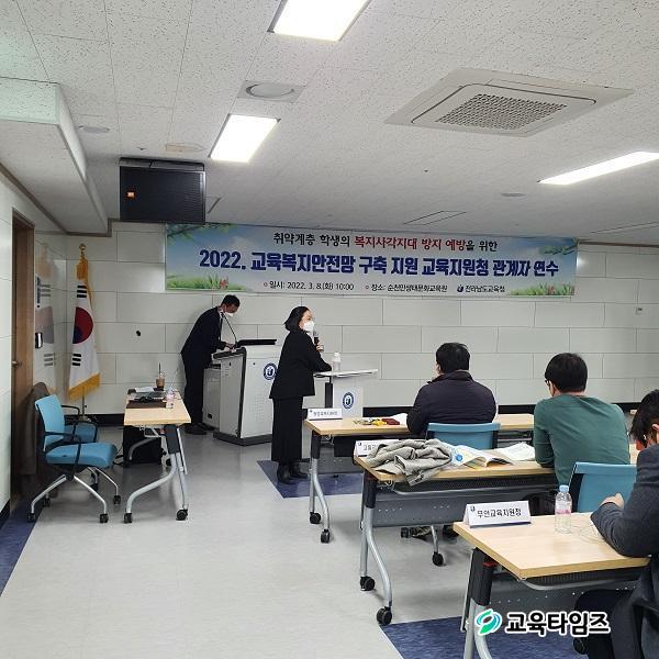 ÀÌ¿Í °ü·Ã, Àü¶ó³²µµ±³À°Ã»Àº 8ÀÏ(È) ¼øÃµ¸¸»ýŹ®È±³À°¿ø¿¡¼ ±³À°Áö¿øÃ» º¹Áö´ã´ç ÀåÇÐ»ç ¹× ÁÖ¹«°ü µî 40¿© ¸íÀÌ Âü¼®ÇÑ °¡¿îµ¥ ±³À°º¹Áö¾ÈÀü¸Á ±¸Ãà Áö¿øÀ» À§ÇÑ ¿¬¼ö¸¦ ½Ç½ÃÇß´Ù.
