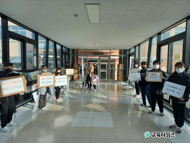 10ÀÏ ¹®¹éÃʵîÇб³¿¡¼´Â Àü±³»ý 59¸íÀÌ µµ¾Ï°ü ¾Õ°ú ¿À¹öºê¸´Áö¿¡¼ ÇлýÀÚġȸ ÁÖ°üÀ¸·Î 'Çб³Æø·Â¿¹¹æ Ä·ÆäÀΰú ¾ð¾îÆø·Â¿¹¹æ Ä·ÆäÀÎ'À» ½Ç½ÃÇßÀ¸¸ç Àü±³ ÀÓ¿ø°ú ÇÐ±Þ ÀÓ¿øµéÀÌ ÁÖüÀûÀ¸·Î Âü°¡ÇØ Àü±³»ýÀ» ´ë»óÀ¸·Î Æø·Â¾ø´Â Çб³, ¾ÈÀüÇÑ Çб³¸¦ ¸¸µéÀÚ°í Á¦¾ÈÇß´Ù.