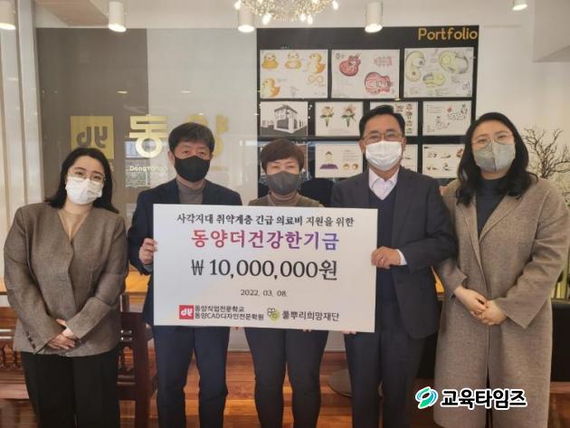 [±³À°Å¸ÀÓÁî/»çȸ] °Çö¼ö ±âÀÚ = Áö³ 16ÀÏ ¿ÀÀü µ¿¾çÁ÷¾÷Àü¹®Çб³¡¤µ¿¾çCADµðÀÚÀÎÀü¹®Çпø(¿øÀå ¿À¼º±Ù)ÀÌ (Àç)Ç®»Ñ¸®Èñ¸ÁÀç´Ü(ÀÌ»çÀå À̺´¸ð)¿¡ ¡®µ¿¾ç´õ°Ç°Çѱâ±Ý¡¯À» Á¶¼ºÇϰí 1õ¸¸¿øÀ» ÀüÇß´Ù.