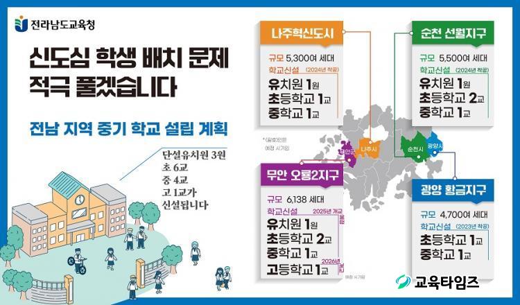 ÀÌ¿¡ Àü³²±³À°Ã»Àº ±×µ¿¾È ÇзÉÀα¸°¡ ±Þ°¨ÇÏ´Â ¼Ó¿¡¼µµ Àü³² Áö¿ª µµ½Ã°³¹ß°èȹ¿¡ µû¶ó À¯ÀԵǴ ÇлýµéÀ» °¢ ±Þ Çб³¿¡ Àû±â¿¡ ¹èÄ¡Çϱâ À§ÇØ µµ½Ã ¼ºÀå¿¡ ¸ÂÃç ¸Å³â Çб³¸¦ ½Å¼³ÇØ ¿Ô´Ù