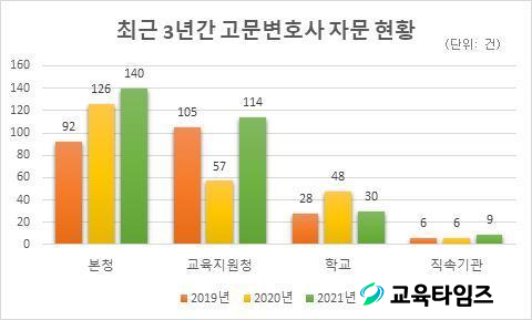 ÃÖ±Ù 3³â°£ °í¹®º¯È£»ç ÀÚ¹® ÇöȲ(ÃÑ 761°Ç)À» ºÐ¼®ÇÑ °á°ú, ³»¿ë»óÀ¸·Î´Â ¹ý·üÇØ¼®, ¿ë¿ª¡¤°ø»ç°è¾à, ¼ö´ç Áö±Þ¿¡ °üÇÑ ¹®Àǰ¡ ÁÖ¸¦ ÀÌ·ð°í, ±â°üº°·Î´Â º»Ã»(47%), ±³À°Áö¿øÃ»(36%), Çб³(14%), Á÷¼Ó ±â°ü(3%) ¼øÀ¸·Î ÀÌ¿ëÇÑ °ÍÀ¸·Î ³ªÅ¸³µ´Ù.