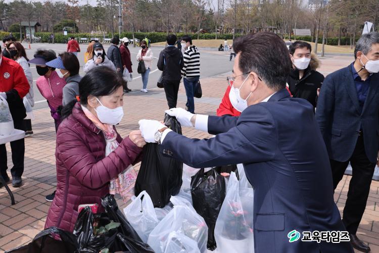 ÇãÅÂÁ¤ ½ÃÀå°ú ±ÇÁß¼ø ½ÃÀÇȸÀÇÀåÀº Äڷγª ¹æ¿ª ÀÚ¿øºÀ»ç¿¡ ³ª¼¹´ø °¡¿Â±æºÀ»ç´Ü Á¤±âÈ£ ȸÀå, ½Ãû¾î¸°ÀÌÁý ¾î¸°ÀÌ 6¸í µî°ú ÇÔ²² ½Ã¸³¹Ì¼ú°ü ¾Õ ³ìÁö°ø°£¿¡ ´ÀƼ³ª¹«¸¦ ½ÄÀçÇÏ¸ç ½Ä¸ñÀÏÀ» ±â³äÇß´Ù.