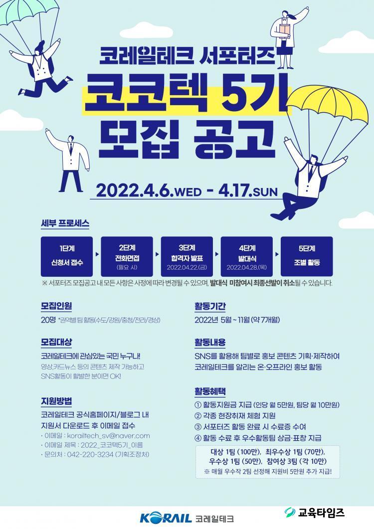 ÄÚ·¹ÀÏÅ×Å© ¼Æ÷ÅÍÁî´Â ´Ù°¡¿À´Â 5¿ùºÎÅÍ 11¿ù±îÁö Ȱµ¿Çϸç, ±â°ü »ç¾÷À» ¼Ò°³Çϰí öµµ¹æ¿ª ¹× ¾ÈÀü°ú ESG°æ¿µ ½ÇÇöÀ» À§ÇÑ ´ë±¹¹Î È«º¸ Ȱµ¿À» ¼±µµÇÏ´Â ¿ªÇÒÀ» ÇÑ´Ù. ¶Ç öµµ»ê¾÷¡¤¼ºñ½º ±â¼ú ºÐ¾ß¿¡¼ ÇöÀåüÇèÀ» ÅëÇØ ´Ù¾çÇÑ °æÇèÀ» ÇÒ ¼ö ÀÖ´Ù.