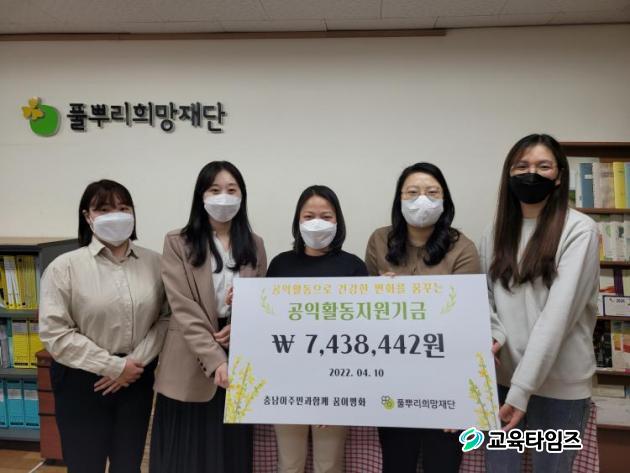 [±³À°Å¸ÀÓÁî/»çȸ] °Çö¼ö ±âÀÚ = Áö³ 10ÀÏ ¿ÀÀü, Ãæ³²ÀÌÁֹΰúÇÔ²² ²ÞÀÌÆòÈ(´ëÇ¥ ¹èÁöÇý, ÀÌÇÏ ²ÞÀÌÆòÈ)´Â (Àç)Ç®»Ñ¸®Èñ¸ÁÀç´Ü(ÀÌ»çÀå À̺´¸ð)¿¡ °øÀÍȰµ¿Áö¿øÀ» À§ÇÑ ±â±ÝÀ¸·Î 7,438,442¿øÀ» ÀüÇß´Ù.