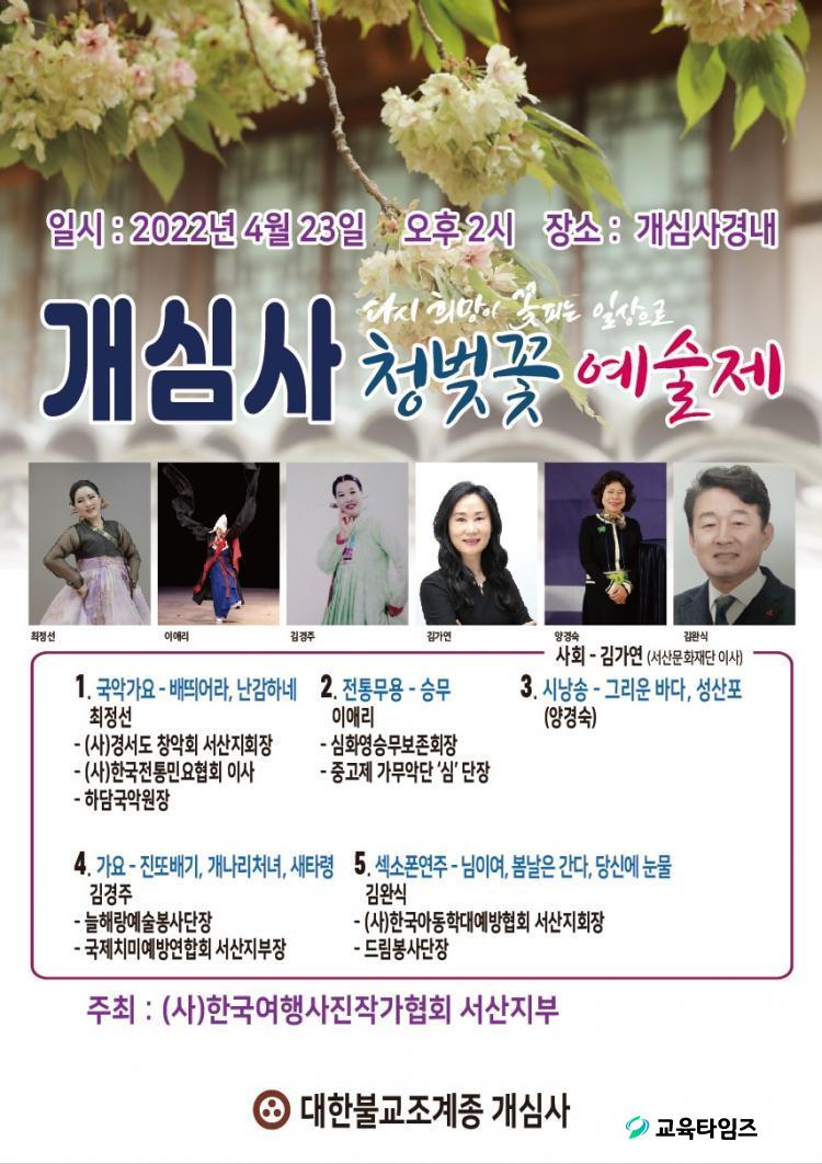 '´Ù½Ã Èñ¸ÁÀÌ ²ÉÇÇ´Â ÀÏ»óÀ¸·Î'¶ó´Â ½½·Î°ÇÀ¸·Î ¿¸®´Â À̹ø ¿¹¼úÁ¦´Â ±è°¡¿¬ ¼»ê¹®ÈÀç´Ü ÀÌ»çÀÇ »çȸ·Î ÃÖÁ¤¼± °æ¼µµ â¾Çȸ ¼»êÁöȸÀåÀÇ ±¹¾Ç°¡¿ä, Àָ̾® ½ÉÈ¿µ½Â¹«º¸Á¸È¸ÀåÀÇ ÀüÅ빫¿ë(½Â¹«), ¾ç°æ¼÷ÀÇ ½Ã ³¶¼Û, ±è°æÁÖ ´ÃÇØ¶û¿¹¼úºÀ»ç´ÜÀåÀÇ °¡¿ä, ±è¿Ï½Ä Çѱ¹¾Æµ¿Çд뿹¹æÇùȸ ¼»êÁöȸÀåÀÇ »ö¼ÒÆù¿¬ÁÖ µî ¾Æ¸§´Ù¿î ¼±À²À» ¼±º¸ÀÏ ¿¹Á¤ÀÌ´Ù.