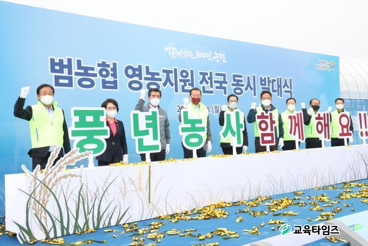[±³À°Å¸ÀÓÁî/°æÁ¦] Á¤¹ÎÁØ ±âÀÚ = ³óÇùÁß¾Óȸ(ȸÀå À̼ºÈñ)´Â 18ÀÏ Ãæ³² º¸·É ÁÖ»ê³óÇù °ü³» À°¹¦Àå¿¡¼¡®¹ü³óÇù ¿µ³óÁö¿ø Àü±¹µ¿½Ã ¹ß´ë½Ä¡¯À» °³ÃÖÇÏ¿© º»°ÝÀûÀÎ ³ó»çöÀÌ µµ·¡ÇÏ¿´À½À» ±¹¹Îµé¿¡°Ô ¾Ë¸®°í ³ó¾÷ÀÎ ¿µ³óÁö¿ø¿¡ Àü»çÀûÀ¸·Î ³ª¼¹´Ù.