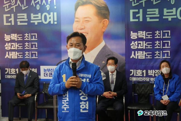 ¹ÚÁ¤Çö ºÎ¿©±º¼ö ¿¹ºñÈĺ¸ÀÚ ¼±°Å»ç¹«¼Ò °³¼Ò½ÄÀÌ 7ÀÏ ¿ÀÈÄ 4½Ã ºÎ¿©À¾ »çºñ·Î 72¹ø±æ 3, 3Ãþ¿¡ ¸¶·ÃµÈ ¼±°Å»ç¹«¼Ò¿¡¼ °³ÃֵƴÙ.