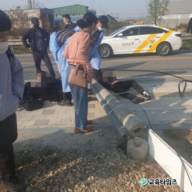 [±³À°Å¸ÀÓÁî/»çȸ] °Çö¼ö ±âÀÚ = Áö³ 4¿ù 19ÀÏ ¿ÀÀü 8½Ã°æ Ãæ³² õ¾È ¼ºÈ¯À¾ ÀÌÆíÇѼ¼»ó ¾ÆÆÄÆ® ¾Õ µµ·Î¿¡ Áö³ª°¡´Â ȹ°Â÷°¡ Åë½Å¼± Àüº¿´ë¸¦ ³Ñ¾î¶ß·Á Áö³ª°¡´Â Çлý 3¸íÀÌ Àüº¿´ë¿¡ ±ò´Â »ç°í°¡ ¹ß»ýÇß´Ù.