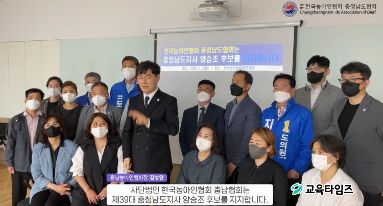 ¾ç½ÂÁ¶ Èĺ¸ ÁöÁö ¼±¾ðÇÏ´Â [»ç)Çѱ¹³ó¾ÆÀÎÇùȸ Ãæ³²Çùȸ=µ¿¿µ»ó ĸó]