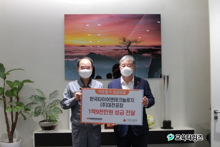 [±³À°Å¸ÀÓÁî/°æÁ¦] Á¤¹ÎÁØ ±âÀÚ = ±Û·Î¹ú ¼±µµ ŸÀÌ¾î ±â¾÷ Çѱ¹Å¸ÀÌ¾î¾ØÅ×Å©³î·ÎÁö¢ß(´ëÇ¥ÀÌ»ç À̼öÀÏ, ÀÌÇÏ Çѱ¹Å¸À̾î)´Â 12ÀÏ ¿ÀÀü ´ëÀü½Ã ´ë´ö±¸ ¸ñ»óµ¿ Çѱ¹Å¸ÀÌ¾î ´ëÀü°øÀå¿¡¼ Á¤ÅÂÈñ ´ëÀü»çȸº¹Áö°øµ¿¸ð±ÝȸÀå, À±Á¤·Ï Çѱ¹Å¸ÀÌ¾î ´ëÀü°øÀåÀå µîÀÌ Âü¼®ÇÑ °¡¿îµ¥ ´ëÀü»çȸº¹Áö°øµ¿¸ð±Ýȸ¿¡ ÀÌ¿ô»ç¶û ¼º±Ý 1¾ï 9õ¸¸¿øÀ» ±âŹÇß´Ù.