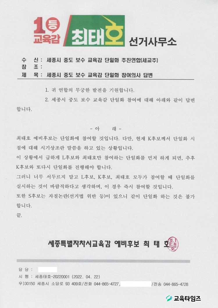 ÃÖÅÂÈ£ Èĺ¸ ÃøÀº ¾ÇÀÇÀûÀÎ ÇãÀ§»ç½Ç·Î ÃÖÅÂÈ£ È常¦ ºñ¹æÇÑ °Í¿¡ ´ëÇØ¼´Â ¹ý°ú ¿øÄ¢¿¡ µû¶ó Á¶Ä¡ÇÒ ¿¹Á¤À̶ó°í ÀüÇÏ¸é¼ Áö³ ¡ã2018³â ¼Û¸í¼® Áøº¸±³À°°¨ Èĺ¸ ¼±°Å¿îµ¿ »çÁø, ¡ã2018³â º¸¼ö Èĺ¸¿´´ø Á¤¿øÈñ ±³À°°¨ Èĺ¸¿ÍÀÇ ´ÜÀÏÈ »çÁø, ¡ã2022³â ¼¼±³ÃßÀÇ ´ÜÀÏÈ Á¦¾È¿¡ ´ëÇÑ ´äº¯¼¸¦ °ø°³Çß´Ù.