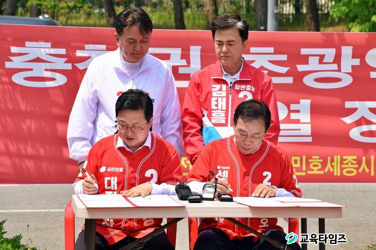 À̳¯ ÀÌÀå¿ì È帴 ÃÖ¹ÎÈ£ ¼¼Á¾Æ¯º°ÀÚÄ¡½ÃÀå Èĺ¸, ±èÅÂÈì ÃæÃ»³²µµÁö»ç Èĺ¸, ±è¿µÈ¯ ÃæÃ»ºÏµµÁö»ç Èĺ¸¿Í ÇÔ²² ÃæÃ»±Ç Ãʱ¤¿ª »ó»ý°æÁ¦±ÇÀ» ¼±¾ðÇϰí Çù¾àÀ» ü°á, À±¼®¿ Á¤ºÎÀÇ Áö¿ª ±ÕÇü¹ßÀü Àü·«À» ¼±µµÇÏÀÚ°í Çß´Ù.