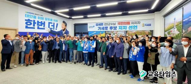 ±¹¹ÎÀÇÈû ±è¼¼È£ Èĺ¸ ¼±°ÅÄ·ÇÁ ÇÙ½É °ü°èÀÚµéÀÌ 23ÀÏ ¹ÎÁÖ´ç °¡¼¼·Î Èĺ¸ÁöÁö¸¦ ¼±¾ðÇϰí ÀÖ´Ù [»çÁø=°¡¼¼·Î Èĺ¸ ¼±°Å»ç¹«¼Ò]