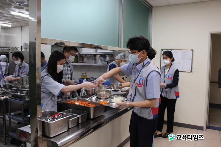 À̳¯ µµ·Î°ø»ç ÀÓÁ÷¿øµéÀº Á×¾Ï(ºÎ»ê¹æÇâ)ÈÞ°Ô¼Ò ¿Õ°¥ºñÅÁ 120ÀκÐÀ» ÁغñÇØ ±Þ½Ä ºÀ»ç¸¦ ÅëÇØ Àå¾ÖÀε鿡°Ô µû¶æÇÑ ÇÑ ³¢ ³ª´®À» ÇÒ ¼ö ÀÖ´Â ½Ã°£À» °¡Á³´Ù.