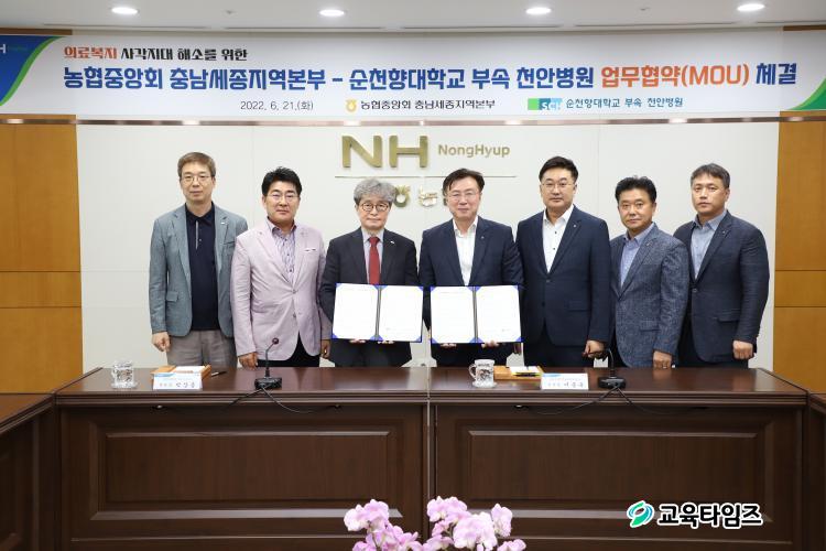 ¡ãÀÌÁ¾¿í ³óÇùÃæ³²¼¼Á¾Áö¿ªº»ºÎÀå(¿ÞÂÊ ³×¹øÂ°)Àº ¹Ú»óÈì ¼øÃµÇâ´ëÇб³ ºÎ¼Ó õ¾Èº´¿øÀå(¿ÞÂÊ ¼¼¹øÂ°)°ú ³ó¾÷ÀÎ ¹× Ãë¾à°èÃþÀÇ º¸°Çº¹Áö ÇØ¼Ò¸¦ À§ÇÑ ÀÇ·áÁö¿ø ÃßÁø »óÈ£Çù·Â ¾÷¹«Çù¾àÀ» 21ÀÏ Ã¼°áÇß´Ù. [Ãæ³²¼¼Á¾³óÇù=Á¦°ø]