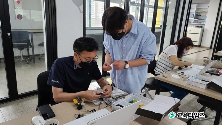 À̹ø ¿¬¼ö´Â ¿¹»ê±³À°Áö¿øÃ»ÀÇ ÁßÁ¡ »ç¾÷ÀÎ »ó»ó°ú »ó»ýÀ¸·Î ¹Ì·¡¸¦ ÁغñÇÏ´Â ¿¹»ê»ó»óÅå±³À°¡®ÀÇ ÀÏȯÀ¸·Î ½Ç½ÃµÇ¾úÀ¸¸ç ·Îº¿ Ȱ¿ë Àΰø Áö´É ¼ö¾÷À» À§ÇÑ ½Ç½À Áß½ÉÀÇ ¿¬¼ö ¿î¿µÀ¸·Î ±³¿øÀÇ AI±â¹Ý À¶ÇÕ±³À°¿¡ ´ëÇÑ Àü¹®¼ºÀ» Á¦°íÇÏ¿´´Ù. ¶ÇÇÑ ¿¬¼ö»ýµé¿¡°Ô ÃʵîÇб³ 5 ,6Çг⠽ǰú ±³°ú¿ë ·Îº¿ µîÀÇ Áغñ¹° ²Ù·¯¹Ì¸¦ Á¦°øÇÏ¿© ¿¬¼ö»ýµéÀÇ Âü¿© ÀÇÁö¸¦ ³ô¿´À¸¸ç ¿¬¼ö ÈÄ ±³½Ç ÇöÀå¿¡¼ ¿øÈ°ÇÏ°Ô È°¿ëÇÒ ¼ö ÀÖµµ·Ï Áö¿øÇß´Ù.