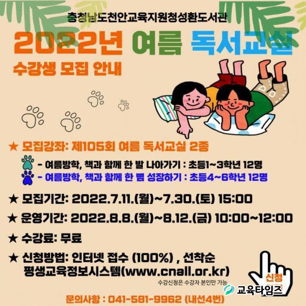 [±³À°Å¸ÀÓÁî/Ãæ³²±³À°] °Çö¼ö ±âÀÚ = õ¾È±³À°Áö¿øÃ»¼ºÈ¯µµ¼°ü(°üÀå ¹®Á¤¼÷)Àº 2022³â ¿©¸§ µ¶¼±³½Ç ¼ö°»ýÀ» 11ÀϺÎÅÍ ÀÎÅͳÝ(Æò»ý±³À°Á¤º¸½Ã½ºÅÛ www.cnall.or.kr)À» ÅëÇØ ¼±Âø¼ø ¸ðÁýÇÑ´Ù.