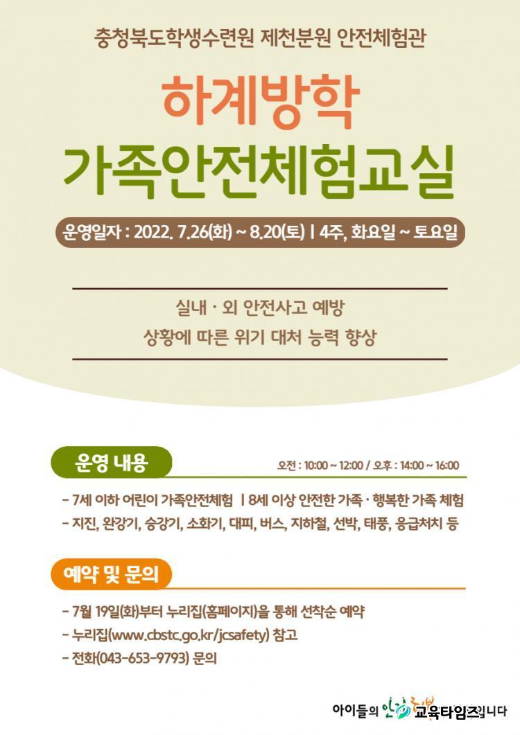[±³À°Å¸ÀÓÁî/ÃæºÏ±³À°] ¹Úö¿ì ±âÀÚ = ÃæÃ»ºÏµµÇлý¼ö·Ã¿ø Á¦ÃµºÐ¿ø(¾ÈÀüüÇè°ü)Àº 7¿ù 26ÀϺÎÅÍ 8¿ù 20ÀϱîÁö 4ÁÖ(È~Åä) µ¿¾È, ÃæºÏ µµ³» Çлý¡¤Çкθð 400°¡Á· ÃÑ 1,200¿© ¸íÀ» ´ë»óÀ¸·Î ÇÏ°è¹æÇÐ °¡Á·¾ÈÀüüÇè±³½ÇÀ» ¿î¿µÇÑ´Ù.