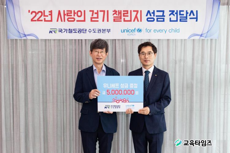 [±³À°Å¸ÀÓÁî/°æÁ¦] Á¤¹ÎÁØ ±âÀÚ = ±¹°¡Ã¶µµ°ø´Ü ¼öµµ±Çº»ºÎ(º»ºÎÀå ¼Õº´µÎ)´Â Áö³ 4¿ù ½ÃÇàÇÑ ¡®»ç¶ûÀÇ °È±â ±âºÎ 縰Áö¡¯ÀÇ ¸ñÇ¥ Ãʰú ´Þ¼ºÀ¸·Î ¼¼°è ¾î¸°ÀÌ ±¸È£´ÜüÀÎ À¯´Ï¼¼ÇÁÇѱ¹À§¿øÈ¸¿¡ 500¸¸¿øÀ» ±âºÎÇß´Ù°í ¹àÇû´Ù.
