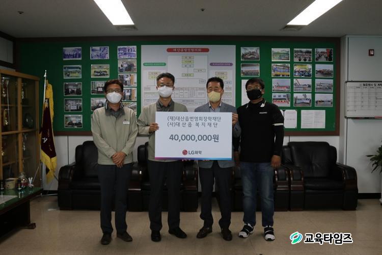 [±³À°Å¸ÀÓÁî/»çȸ] Á¤¿¬ÁÖ ±âÀÚ = 25ÀÏ LGÈÇÐ ´ë»ê°øÀå(ÁÖÀçÀÓ¿ø ±èµµ±Õ »ó¹«)¿¡¼ ´ë»êÀ¾ º¹ÁöÀç´Ü°ú ´ë»êÀ¾ ÀåÇÐÀç´ÜÀ» ¹æ¹®ÇÏ¿© '22³â º¹Áö¡¤ÀåÇбâ±Ý 4,000¸¸¿øÀ» Àü´ÞÇß´Ù.