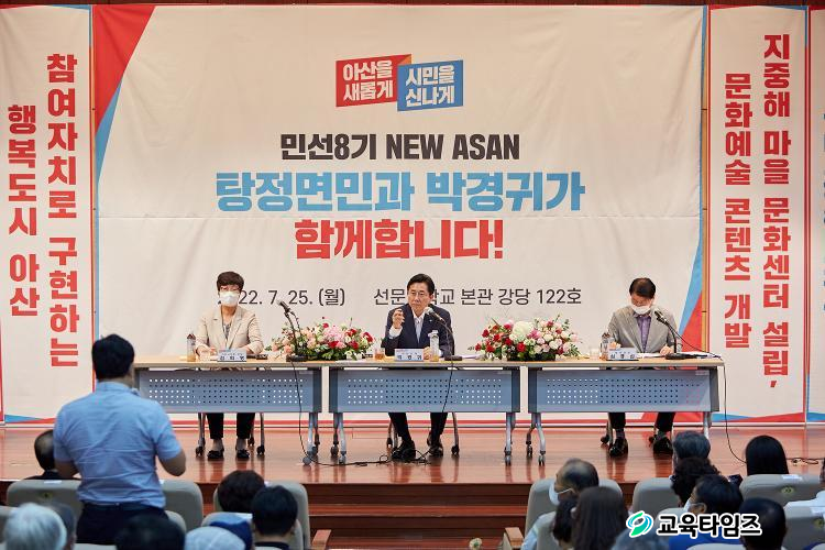 ÅÁÁ¤¸é ¿¸°°£´ãȸ¿Í ¿Â¾ç5µ¿ ¿¸°°£´ãȸ¿¡´Â °¢°¢ 200¸íÀÌ ³Ñ´Â ½Ã¹ÎÀÌ Âü¼®ÇØ ¹Ú°æ±Í ¾Æ»ê½ÃÀåÀÌ Á÷Á¢ ¼³¸íÇÏ´Â ¾Æ»ê½Ã ºñÀü¿¡ ±Í¸¦ ±â¿ï¿´´Ù.
