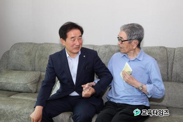 [±³À°Å¸ÀÓÁî/ÃæºÏ] À̺´Á¾ ±âÀÚ = ¼Û±â¼· ÁøÃµ±º¼ö´Â 8ÀÏ Á¦77Áֳ⠱¤º¹ÀýÀ» ¸ÂÀÌÇØ µµ³» À¯ÀÏ »ýÁ¸ µ¶¸³À¯°øÀÚÀÎ ¿À»ó±Ù(98¼¼) ¾Ö±¹Áö»ç¸¦ ¹æ¹®ÇØ À§·ÎÇß´Ù.