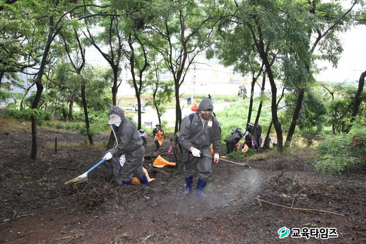[±³À°Å¸ÀÓÁî/ÃæºÏ] ¼¿ë¿ø ±âÀÚ = ûÁֽô ¼ÛÀýµ¿ ¹é·Î¼½ÄÁö Àα٠Áֹε鿡°Ô ¾ÇÃë¹ß»ýÀ» ÃÖ¼ÒÈÇϰí û°áÇÑ È¯°æÀ» Á¦°øÇϱâ À§ÇØ ÀÚ¿¬È¯°æº¸ÀüûÁÖ½ÃÇùÀÇȸ ȸ¿ø µî 50¿© ¸í°ú ÇÔ²² 9ÀÏ ¼ÛÀýµ¿ ¹é·Î¼½ÄÁö¿Í ÁÖº¯ Àϴ븦 ȯ°æÁ¤ºñÇß´Ù.