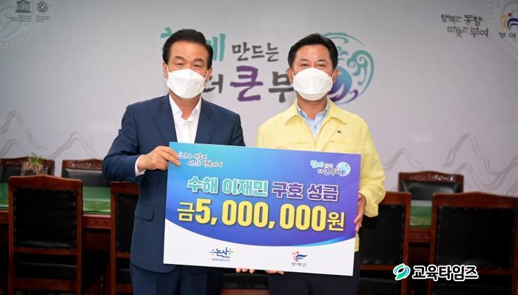 [±³À°Å¸ÀÓÁî/Ãæ³²] Á¤Áöö ±âÀÚ = ¹é¼ºÇö ³í»ê½ÃÀåÀÌ 18ÀÏ Ãæ³² ºÎ¿©¸¦ ¹æ¹®ÇØ ÁýÁßÈ£¿ì ÇÇÇØ ¼º±Ý 500¸¸¿øÀ» Àü´ÞÇϰí, À§·ÎÀÇ ¸Þ½ÃÁö¸¦ ÀüÇß´Ù.