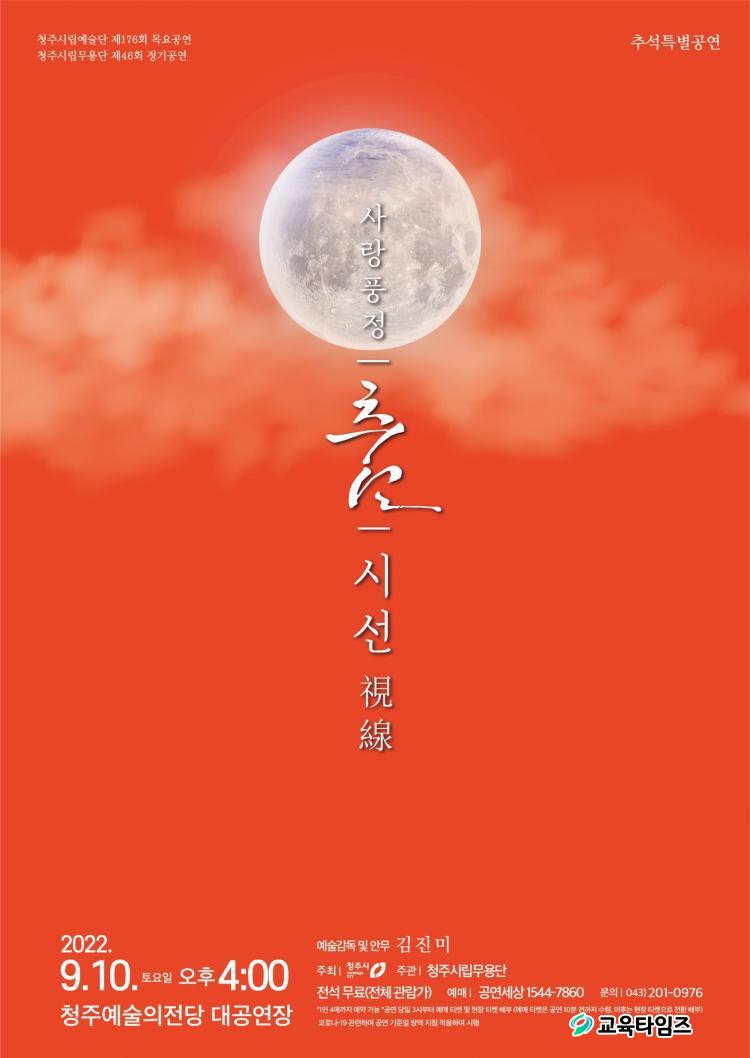 Ãß¼® ´çÀÏÀÎ 9¿ù 10ÀÏ(Åä) ¿ÀÈÄ 4½Ã¿¡ ûÁÖ¿¹¼úÀÇÀü´ç ´ë°ø¿¬Àå¿¡¼ ¿¸®´Â À̹ø °ø¿¬Àº ¸íÀýÀ» ¸Â¾Æ °íÇâÀ» ãÀº ±Í¼º°´°ú ûÁֽùÎÀ» À§ÇÏ¿© Àü¼® ¹«·á·Î ÁøÇàµÈ´Ù.