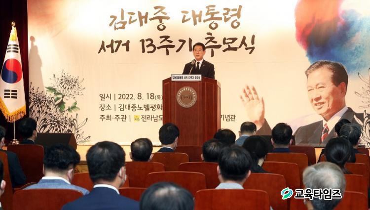 [±³À°Å¸ÀÓÁî/»çȸ] Çϼº¸Å ±âÀÚ = ±è¿µ·Ï Àü¶ó³²µµÁö»ç´Â 18ÀÏ ¸ñÆ÷ ±è´ëÁ߳뺧ÆòÈ»ó±â³ä°ü¿¡¼ ¿¸° ±è´ëÁß ´ëÅë·É ¼°Å 13ÁÖ±â Ã߸ð½Ä¿¡ Âü¼®ÇØ ´ëÇѹα¹°ú ¼¼°è Æòȸ¦ À§ÇØ Çå½ÅÇÑ ±è´ëÁß ´ëÅë·ÉÀÇ À§´ëÇÑ Á¤½Å°ú ½Å³äÀ» °è½ÂÇÏ°í ½ÇõÇÒ °ÍÀ» ´ÙÁüÇß´Ù.