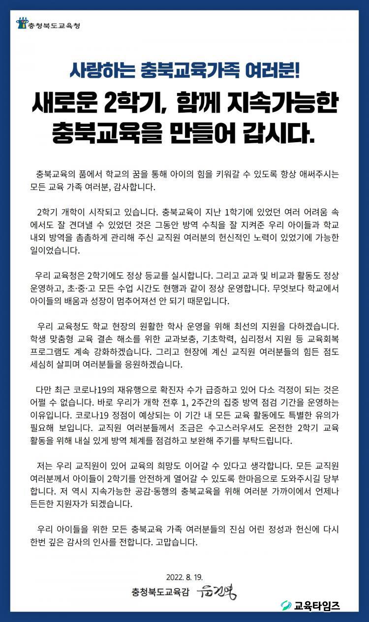 [±³À°Å¸ÀÓÁî/ÃæºÏ±³À°] ±èÇö¹Î ±âÀÚ = ÃæÃ»ºÏµµ±³À°Ã»Àº µµ³» Çб³ÀÇ 2Çб⠰³ÇÐÀ» ¸ÂÀÌÇØ À±°Ç¿µ ÃæÃ»ºÏµµ±³À°°¨ÀÇ ¼Çѹ®À» ¹ß¼ÛÇß´Ù.