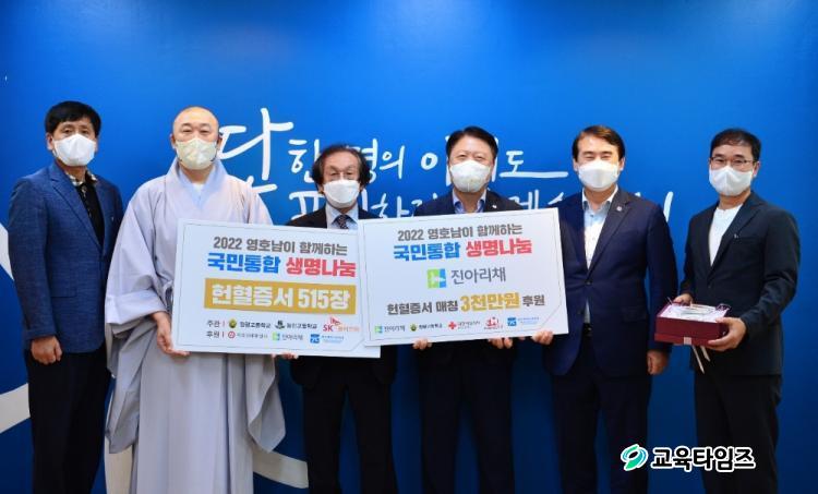 [±³À°Å¸ÀÓÁî/È£³²±³À°] ÃÖµ¿ÁÖ ±âÀÚ = Á¤±¤°íµîÇб³(±³Àå ÇÔº´±Ç)°¡ Áö³ 19ÀÏ ±¤Áֽñ³À°Ã»¿¡¼ '2022 ¿µ.È£³²ÀÌ ÇÔ²²ÇÏ´Â ±¹¹ÎÅëÇÕ »ý¸í³ª´® »ç¶ûÀÇ ÇåÇ÷Áõ¼ ¹× ÈÄ¿ø±Ý Àü´Þ½Ä'À» °¡Á³´Ù