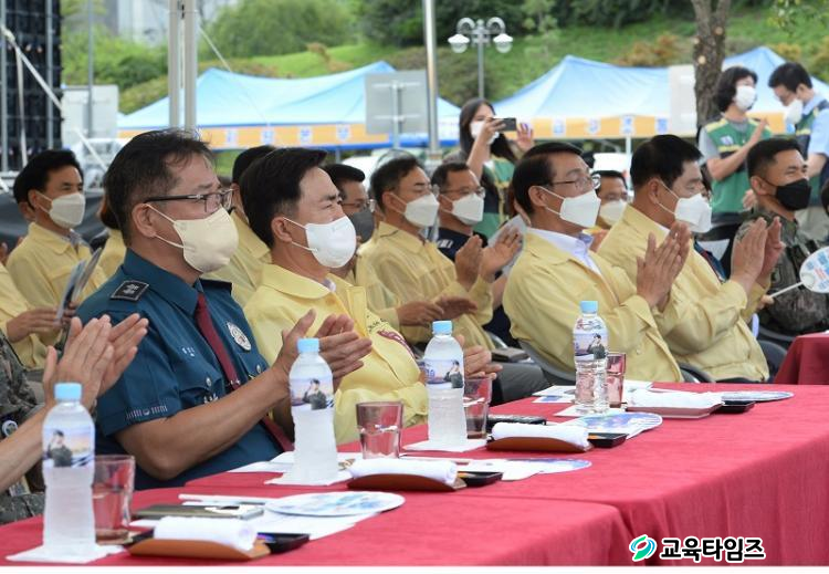 ¹Î¡¤°ü¡¤±º¡¤°æ¡¤¼Ò¹æ ¹× 20°³ À¯°ü±â°ü¡¤´Üü µî 300¿©¸íÀÌ Âü¿©Çϰí 300¿©¸íÀÌ Âü°üÇßÀ¸¸ç, ±º ÀÛÀüÂ÷¿Í °æÂûÂ÷, ¼Ò¹æ¡¤±¸±ÞÂ÷, µå·Ð µî ½ÇÁ¦ Àåºñ¸¦ µ¿¿øÇØ ºñ»ó »óȲ ½Ã À§±â ´ëÀÀ´É·ÂÀ» ³ôÀÌ°í ½Ã¹ÎÀÇ »ý¸í°ú Àç»êÀ» º¸È£ÇÏ¿© ÇÇÇØ¸¦ ÃÖ¼ÒÈÇϱâ À§ÇÑ °µµ ³ôÀº ÈÆ·ÃÀÌ ÁøÇàµÆ´Ù.