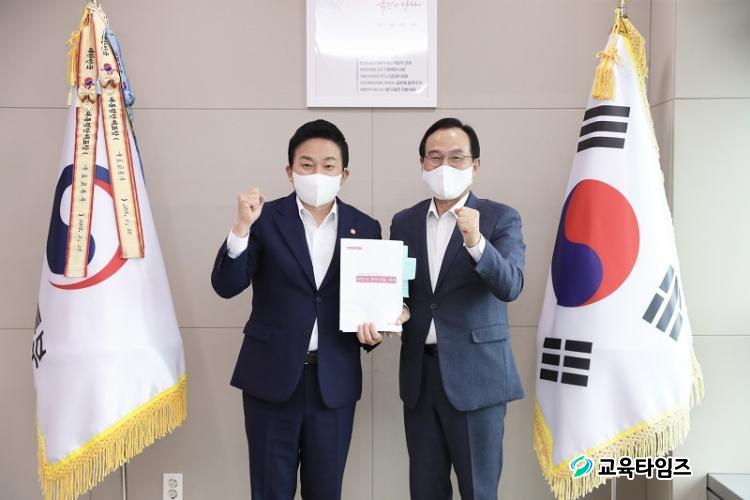 ¿øÈñ·æ ±¹Åä±³ÅëºÎ Àå°ü°ú ¹Ú»óµ· õ¾È½ÃÀåÀÌ 26ÀÏ Ãµ¾ÈÁö¿ª ÁÖ¿ä Çö¾È »ç¾÷¿¡ ´ëÇØ ³íÀÇÇÏ°í ÆÄÀÌÆÃÀ» ¿ÜÄ¡°í ÀÖ´Ù. [»çÁøÁ¦°ø=õ¾È½Ã]