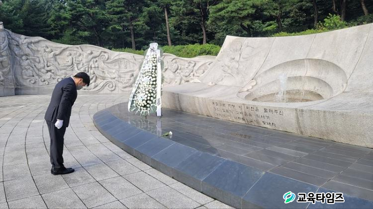 [±³À°Å¸ÀÓÁî/Ãæ³²±³À°] °Çö¼ö ±âÀÚ = õ¾È±³À°Áö¿øÃ» Á¦31´ë ±³À°ÀåÀ¸·Î ÃëÀÓÇÑ ¹ÚÁ¾´ö ±³À°ÀåÀº 9¿ù 1ÀÏ ÃëÀÓ Ã¹³¯ ¹ÎÁ·ÀÇ È¥ÀÌ »ì¾Æ ¼û½¬´Â µ¶¸³±â³ä°ü Ã߸ðÀÇ ÀÚ¸®¸¦ ã¾Æ Á÷¿øµé°ú ÇÔ²² ¼ø±¹¼±¿ ¹× È£±¹¿µ·ÉÀÇ ³ÌÀ» ±â·È´Ù.