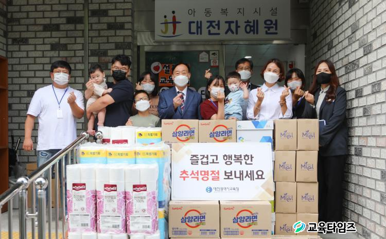 [±³À°Å¸ÀÓÁî/´ëÀü±³À°] Á¤¹ÎÁØ ±âÀÚ = ´ëÀü±¤¿ª½Ã±³À°Ã»(±³À°°¨ ¼³µ¿È£)Àº ¹ÎÁ· °íÀ¯ÀÇ Ãß¼® ¸íÀýÀ» ¸Â¾Æ ÁÖº¯ÀÇ ¾î·Á¿î ÀÌ¿ô°ú µû¶æÇÑ »ç¶ûÀ» ³ª´©°íÀÚ 1ÀϺÎÅÍ ¾Æµ¿°ú ³ëÀÎ, Àå¾ÖÀÎ ½Ã¼³ µî 11°³ »çȸº¹Áö½Ã¼³À» ¹æ¹®ÇÏ¿© À§¹®Ç°À» Àü´ÞÇϰí ÀÌ¿ô»ç¶û ³ª´®À» ½ÇõÇÑ´Ù°í ¹àÇû´Ù.