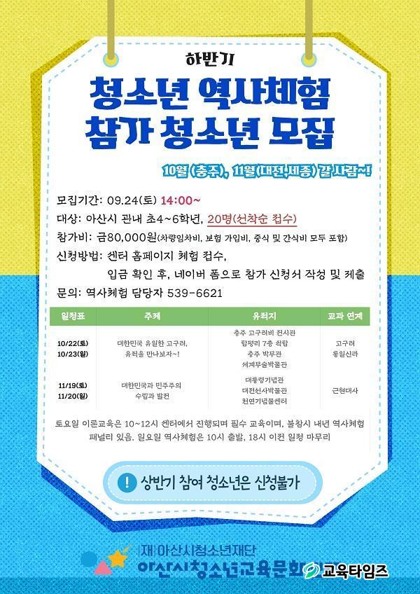[±³À°Å¸ÀÓÁî/Ãæ³²±³À°] Á¶¼ºÂù ±âÀÚ = (Àç)¾Æ»ê½Ãû¼Ò³âÀç´Ü, ¾Æ»ê½Ãû¼Ò³â±³À°¹®È¼¾ÅÍ(°üÀå ¹èÁ¤¼ö)´Â 9¿ù 24ÀÏ ¿ÀÀü 10½ÃºÎÅÍ ¼¾ÅÍ È¨ÆäÀÌÁö¸¦ ÅëÇØ ÇϹݱâ û¼Ò³â ¿ª»çüÇè Âü¿© û¼Ò³âÀ» ¸ðÁýÇÑ´Ù.