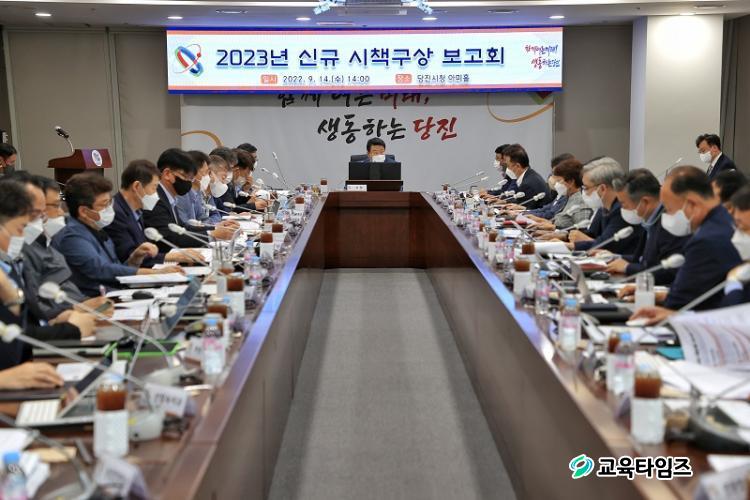 [±³À°Å¸ÀÓÁî/Ãæ³²] °¡±ÝÇö ±âÀÚ = ´çÁø½Ã°¡ ½Å¼ºÀå µ¿·Â ¸¶·Ã°ú ½Ã¹ÎÀÇ »îÀÇ Áú °³¼±À» À§ÇØ 2023³â »õ·Ó°Ô ÃßÁøÇÒ ½Å±Ô½ÃÃ¥ 114°³ »ç¾÷À» ¹ß±¼Çϰí 14ÀÏ ¿À¼ºÈ¯ ´çÁø½ÃÀåÀÇ ÁÖÀç·Î 2023³â ½Å±Ô½ÃÃ¥ º¸°íȸ¸¦ °³ÃÖÇß´Ù.