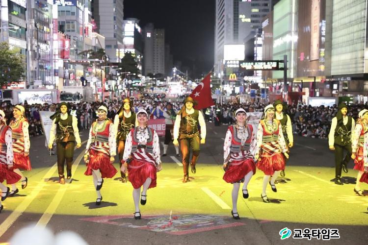 ½ÅºÎµ¿ ¹æÁ×¾È ¿À°Å¸®¿¡¼ Å͹̳Π»ç°Å¸®±îÁö 0.55km ±¸°£¿¡¼ ÆîÃÄÁø ÃàÁ¦ÀÇ ¹é¹Ì °Å¸®´í½ºÆÛ·¹À̵å´Â ±¹³»¡¤¿Ü 23ÆÀ 1,000¿© ¸íÀÌ ´Ùä·Î¿î ÃãÀÇ Ç⿬À» ¼±º¸¿´´Ù. Àͼ÷ÇÏ´ø °Å¸®°¡ ÃàÁ¦ÀÇ ÀåÀ¸·Î ¹Ù²î´Â ¸¶¹ý °°Àº ½Ã°£¿¡ 5¸¸¿© ¸íÀÇ °üÁßÀÌ ¸ðÀÌ¸ç °æ¿¬ÀÚ¿Í °üÁß ¸ðµÎ°¡ ÃãÀ¸·Î ÇϳªµÇ´Â Àå°üÀ» ¿¬ÃâÇß´Ù.