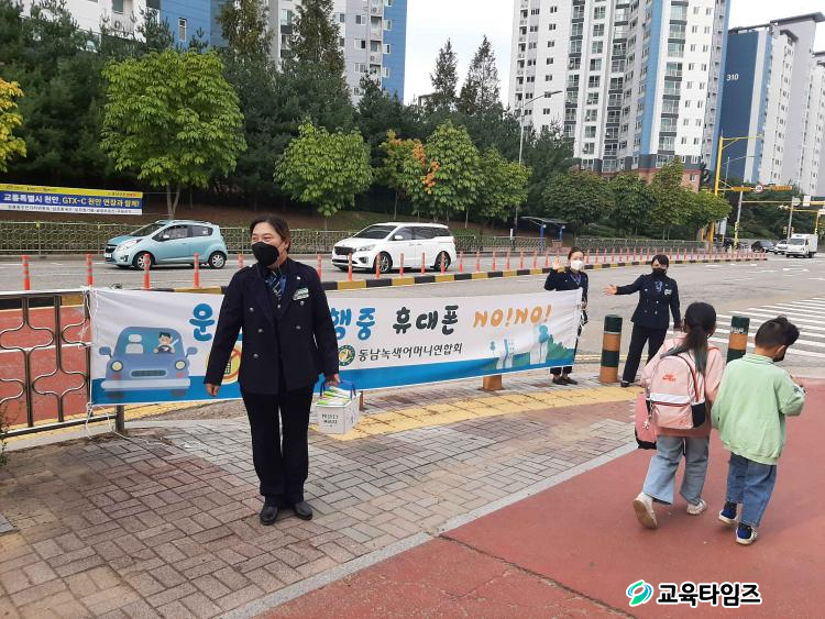 Ä·ÆäÀÎÀº Çб³ Á¤¹®°ú ÈĹ®ÀÇ µî±·±æ¿¡¼ ½Ç½ÃµÆ´Ù. ³ì»ö¾î¸Ó´Ï¿¬ÇÕȸ µ¿³²Áöȸ ȸ¿ø, º»±³ Çкθðȸ¿Í ³ì»ö¾î¸Ó´Ïȸ ȸ¿øµéÀÌ Àû±Ø Âü¿©ÇÏ¿© Çлýµé¿¡°Ô º¸ÇàÁß ½º¸¶Æ®Æù ±ÝÁö, ±³Åë½ÅÈ£ Àß ÁöŰ±â µî ¾ÈÀüÇÑ º¸ÇàÁöµµ¸¦, ¿îÀüÀÚ¿¡°Ô´Â ¾î¸°À̺¸È£±¸¿ª ¾ÈÀü¿îÇà°ú Çб³ ¾Õ ÁÖ¡¤Á¤Â÷±ÝÁö±¸¿ªÀ» Àß ÁöÄÑÁÙ °ÍÀ» ´çºÎÇß´Ù. ¶ÇÇÑ Çб³ Àα٠Ⱦ´Üº¸µµ¿¡ ¾î¸°À̺¸È£±¸¿ªÀ» ¾Ë¸®´Â ³ë¶õ¹ßÀÚ±¹µµ ¼³Ä¡Çß´Ù.