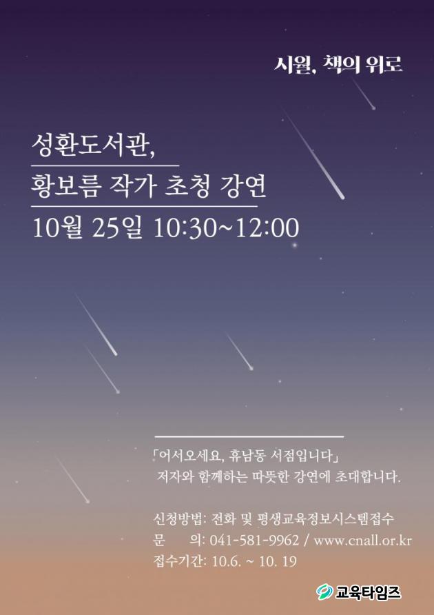 [±³À°Å¸ÀÓÁî/Ãæ³²±³À°] °Çö¼ö ±âÀÚ = õ¾È±³À°Áö¿øÃ»¼ºÈ¯µµ¼°ü(°üÀå ¹®Á¤¼÷)Àº <½Ã¿ù, Ã¥ÀÇ À§·Î>¶ó´Â ÁÖÁ¦·Î 10¿ù 25ÀÏ 10:30ºÎÅÍ 12½Ã±îÁö Ȳº¸¸§ ÀÛ°¡ ÃÊû °¿¬À» ¿¬´Ù.