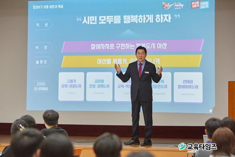±³À°Àº ¹Ú°æ±Í ½ÃÀåÀÇ ½ÃÀü ºñÀü Ư°À¸·Î ½ÃÀ۵ƴÙ. 63¸íÀÇ ½Å±Ô °ø¹«¿ø ¾Õ¿¡ ¼± ¹Ú ½ÃÀåÀº ¡°°øÁ÷ÀÚÀÇ ¿ì¼± °¡Ä¡´Â ¾ðÁ¦³ª ½Ã¹ÎÀÇ ÇູÀ̾î¾ß ÇÑ´Ù¡±°í °Á¶ÇÏ¸ç ¡°°ø¹«¿øÀ̶ó´Â Á÷¾÷°ú ¾Æ»êÀ̶ó´Â Áö¿ªÀ» ÅÃÇÑ ÀÌÀ¯´Â Á¦°¢°¢À̰ÚÁö¸¸, ¾Æ»ê½Ã¹Î°ú ¾Æ»êÀÇ ¹Ì·¡¸¦ À§ÇØ ÀÏÇÑ´Ù´Â Àںνɰú Ã¥ÀÓ°¨À» ÀØÁö ¸»°í ÀÏÇØ´Þ¶ó¡±°í ¸»Çß´Ù.