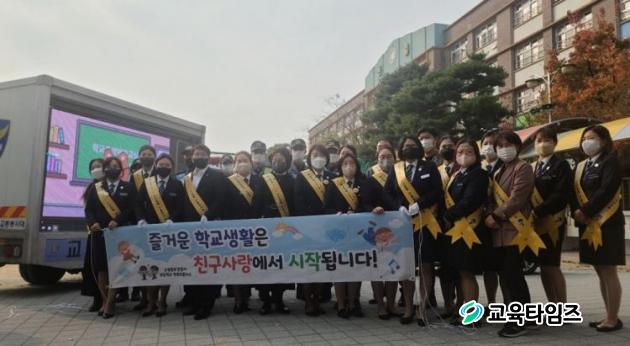 Ä·ÆäÀÎ °ü°èÀÚµéÀº Çϱ³ÇÏ´Â ÇлýµéÀ» ¹Ý°©°Ô ¹è¿õÇϸç, 'Çб³Æø·Â Zero, ¿ì¸® ÇÔ²² ¸¸µé¾î°¡¿ä', 'Áñ°Å¿î Çб³»ýȰÀº Ä£±¸»ç¶û¿¡¼ ½ÃÀ۵˴ϴÙ'¸¦ ³»¿ëÀ» ÇÑ Çö¼ö¸·°ú È«º¸¹° µîÀ» ÀÌ¿ëÇØ È«º¸Çϸç Çб³Æø·Â ¾ø´Â ¾ÈÀüÇÑ Çб³ ¸¸µé±â ¹®È È®»ê¿¡ µ¿ÂüÇÒ °ÍÀ» Àû±Ø È£¼ÒÇß´Ù.